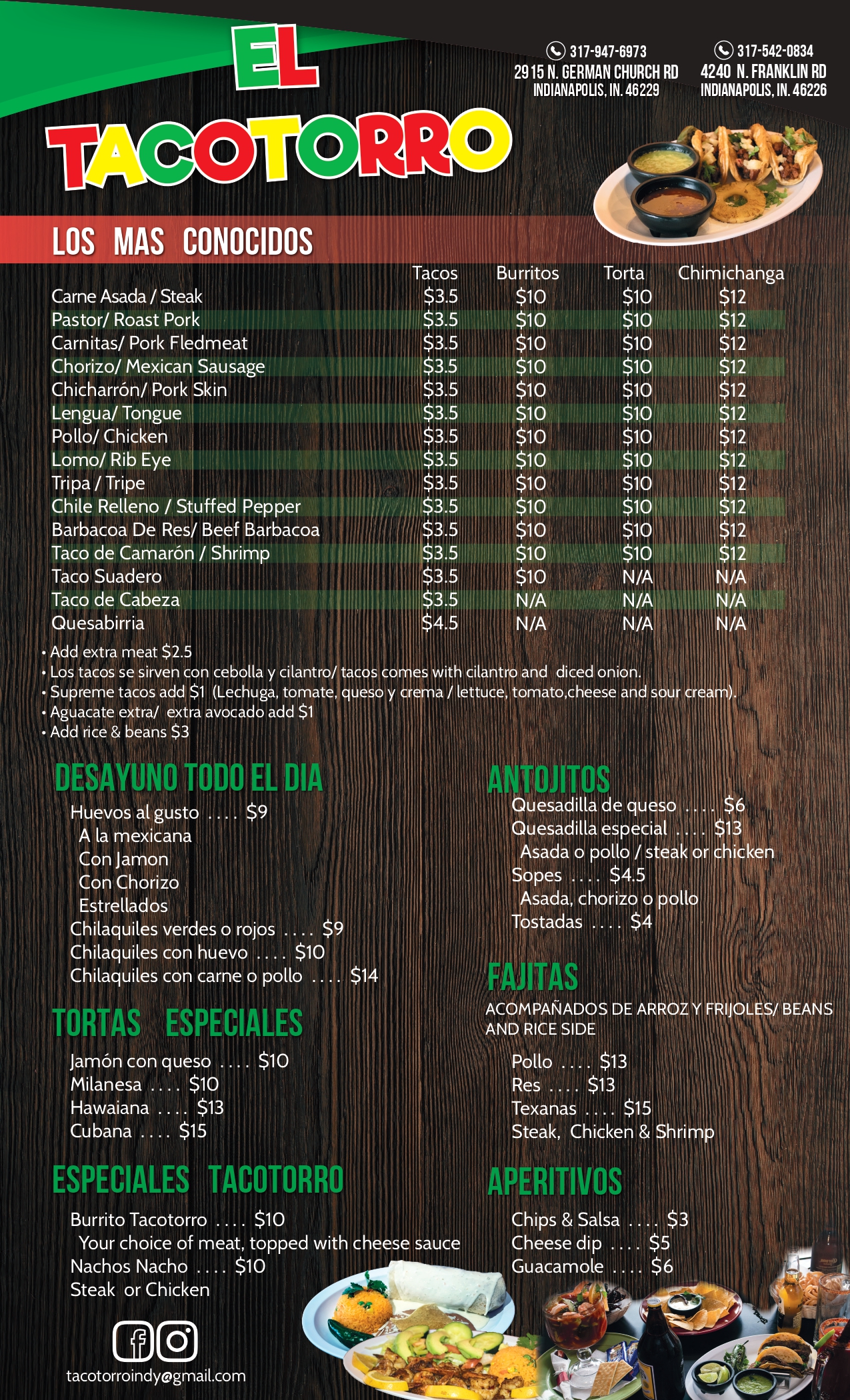 Check out our complete menu with all prices and authentic Mexican dishes. Click on any image to view full size with zoom.
